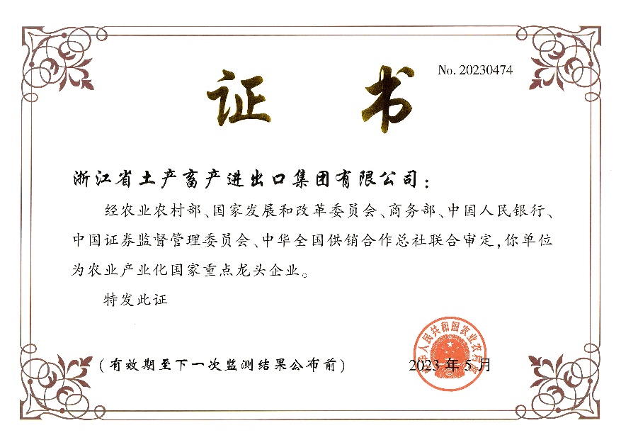 浙江土畜通過(guò)農(nóng)業(yè)產(chǎn)業(yè)化國(guó)家重點(diǎn)龍頭企業(yè)第十次監(jiān)測(cè)