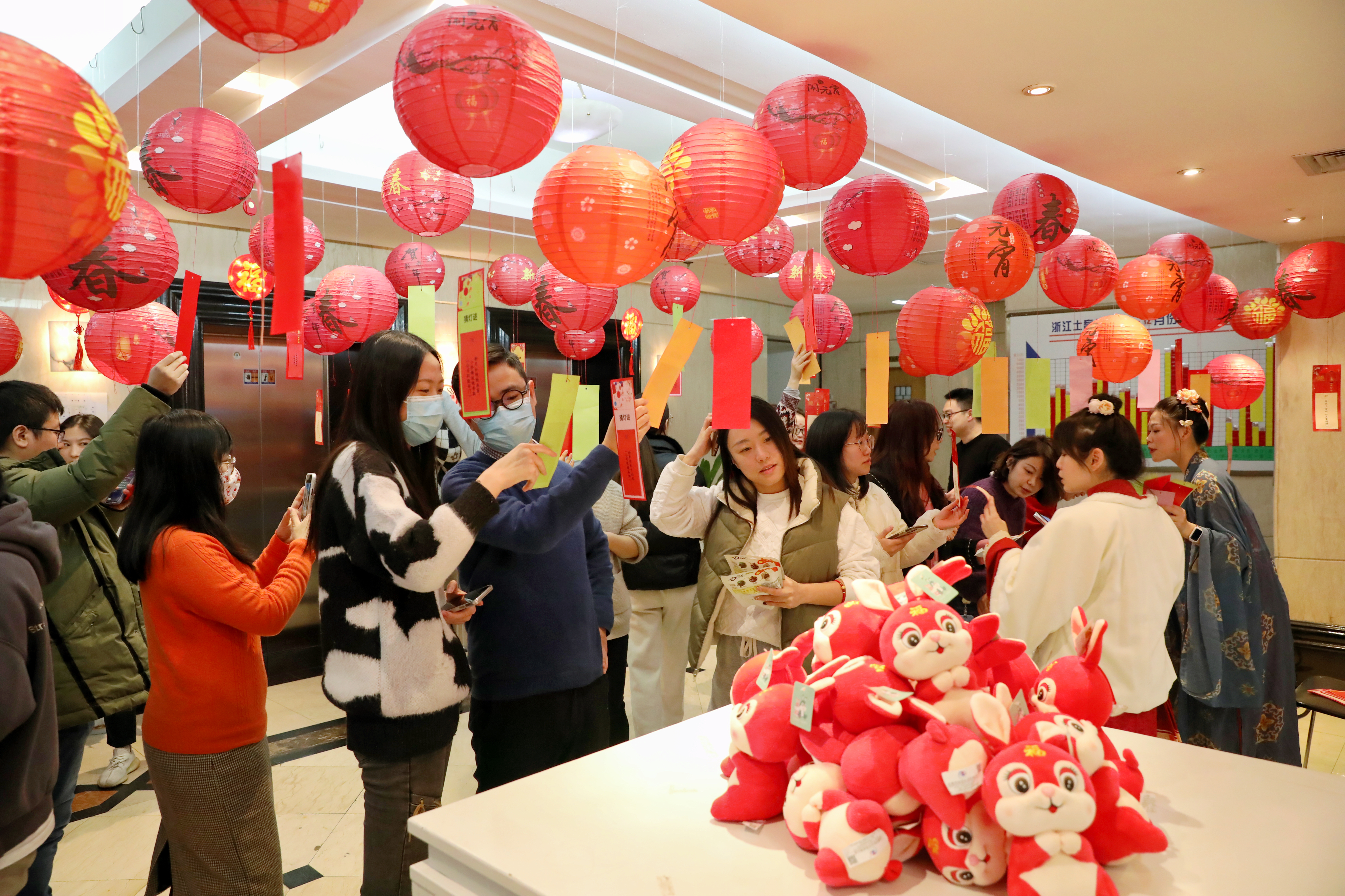 “‘一米’猜二十大熱詞。”“一字加米字,拼出一個來字,謎底是‘拼出來’呀”“‘不準玩虛的’猜土畜精神。”“務實!”…2月3日中午,浙江土畜工會…