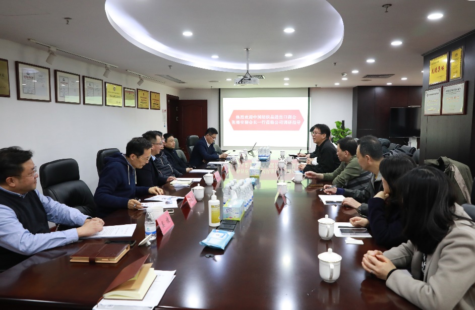 中國(guó)紡織品進(jìn)出口商會(huì)副會(huì)長(zhǎng)張錫安一行蒞臨公司調(diào)研指導(dǎo)