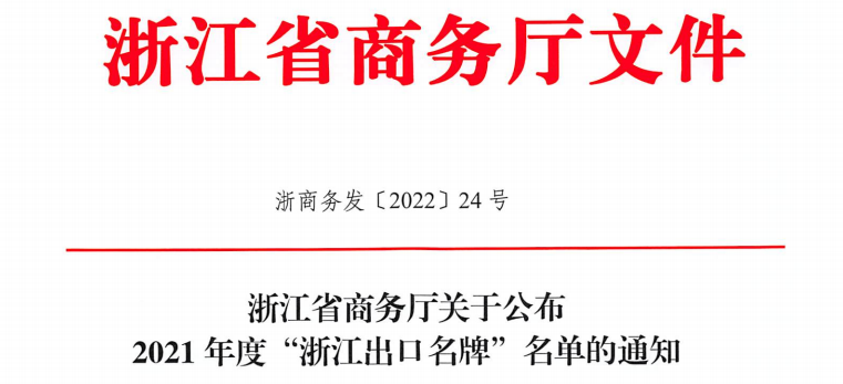 近日,浙江省商務(wù)廳公布了2021年度“浙江出口名牌”評(píng)選結(jié)果。經(jīng)過(guò)材料組織遞交、專家審核、相關(guān)部門意見(jiàn)征求、社會(huì)公示等6個(gè)多月的申報(bào)評(píng)審流程,…