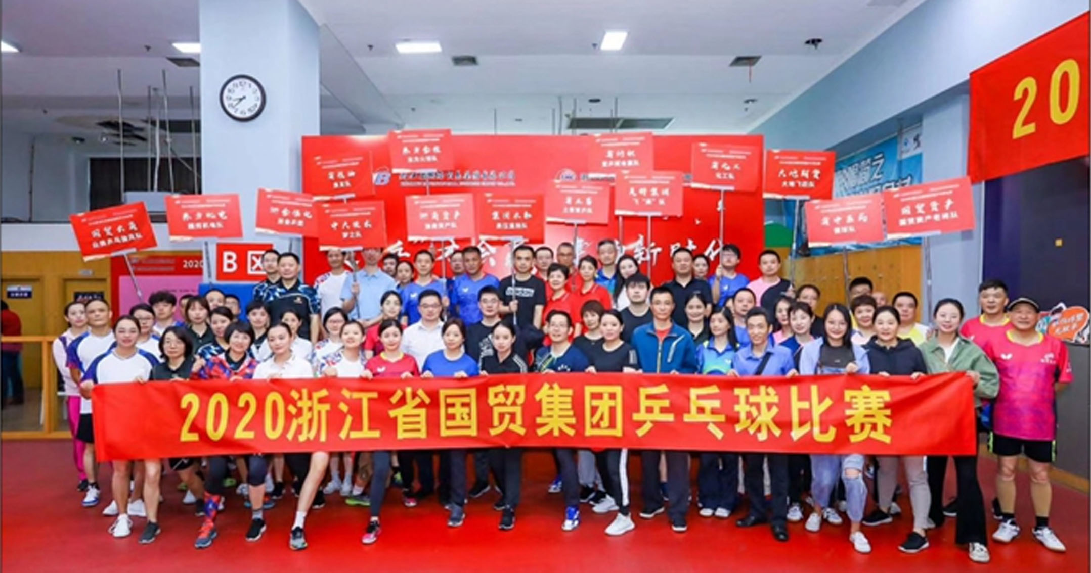 (57名參加運動員和領隊們的大合影) 秋風送爽,碩果飄香。9月22日,由集團工會主辦、省土畜承辦的2020年省國貿集團乒乓球比賽在江干體育中心成功舉…
