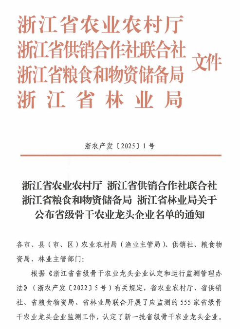 新認定!浙江惠隆獲評省級骨干農業龍頭企業稱號