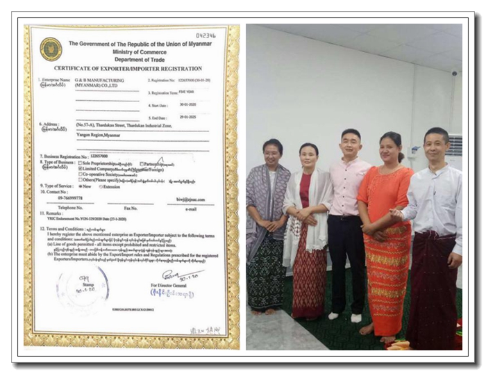 惠元緬甸工廠進出口證書     經營團隊(左二總經理汪明霞)