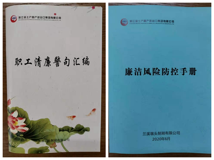 作為浙江省土畜公司下屬開展鬃刷產品研發和加工生產的骨干工廠,蘭溪墩頭制刷有限公司的效益在同行業的排名中一直遙遙領先。“近年來,工廠圍繞生產經營實際,從風險管理鏈條化、風險監督公開化、風險防控信息化三方面,努力推進清廉建設進車間、進班組、進崗位。”在黨支部書記徐統一看來,該廠一直將廉潔風險防控融入工廠管控的努力在其中功不可沒。