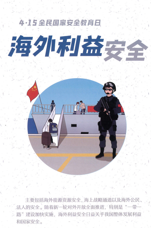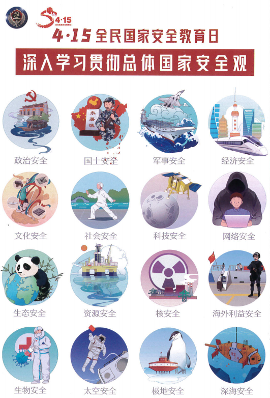 全民國家安全教育日:為增強全民國家安全意識,維護國家安全穩定,2015年7月1日全國人大常委會通過的《中華人民共和國國家安全法》第十四條規定,每年4月15日為全民國家安全教育日。今年的主題是“堅持總體國家安全觀,統籌傳統安全和非傳統安全,為決勝全面建成小康社會提供堅強保障”。國家安全是國家生存和發展最基本、最重要的前提,它關系民生,關系國家穩定,關系社會長遠發展。維護國家安全既是國家責任也是公民責任!