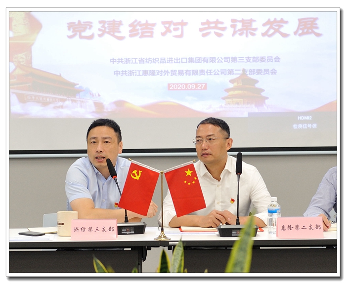 省紡集團黨委書記、董事長施聞雷對惠隆第二支部同志們的到來表示熱烈歡迎。施總指出,兩家公司均為外貿型企業,產品具有相似和互補性,通過黨建共建,雙方可以加強深度融合,在發揮自身優勢的情況下,實現基層黨組織工作互動和資源共享,攜手同行,譜寫雙方發展的新篇章。