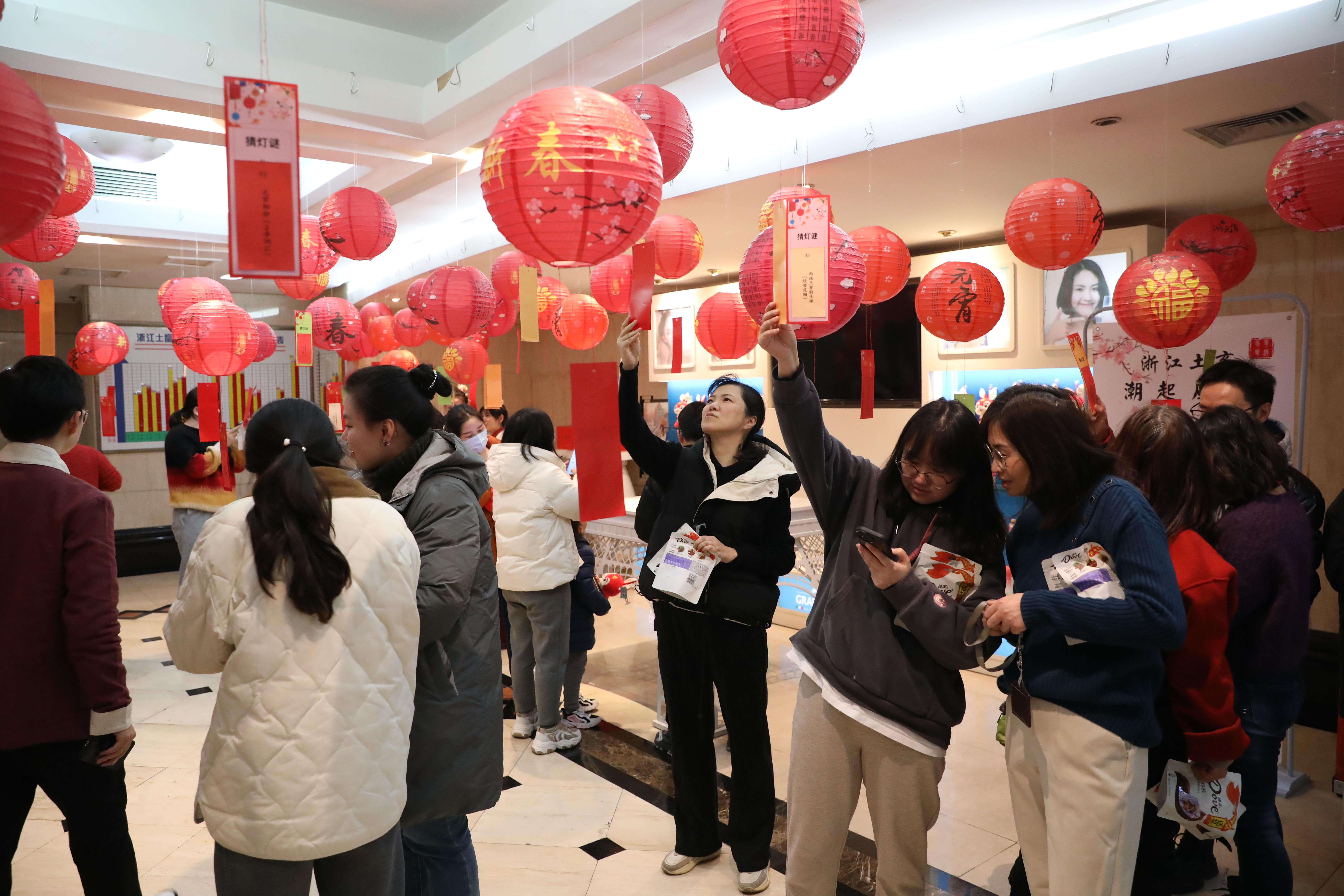 23日中午,浙江土畜工會組織開展元宵猜燈謎活動,公司三樓人頭攢動、熱鬧非凡,廳里錯落別致懸掛了一盞盞喜慶的紅燈籠,燈下都有五光十色的謎箋,吸引了許多員工駐足競猜,有的看著謎面低頭沉思,有的與同伴相互討論,領(lǐng)獎桌旁也是絡(luò)繹不絕。紅紅火火燈籠與熙熙攘攘的人群交相輝映,洋溢著濃濃的“土畜年味兒”。
