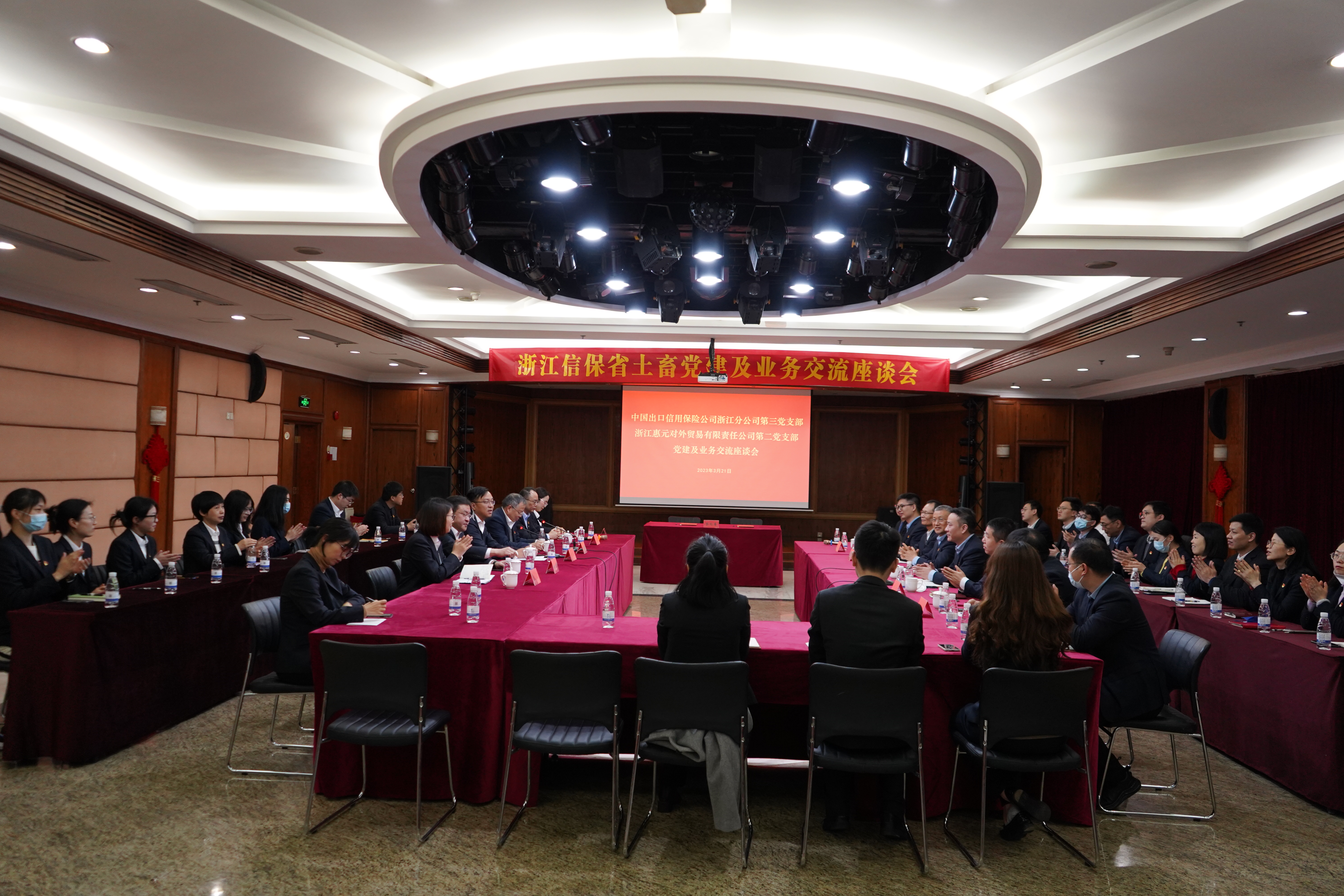 交流座談會上,張斌書記詳細介紹了浙江土畜經營概況和黨建工作。他表示,浙江信保是土畜集團多年的合作伙伴,為我司內外貿業務發展保駕護航。此次支部共建有利于深化合作,兩個支部要充分發揮各自優勢,形成互幫互助、聯合推動的整體合力。