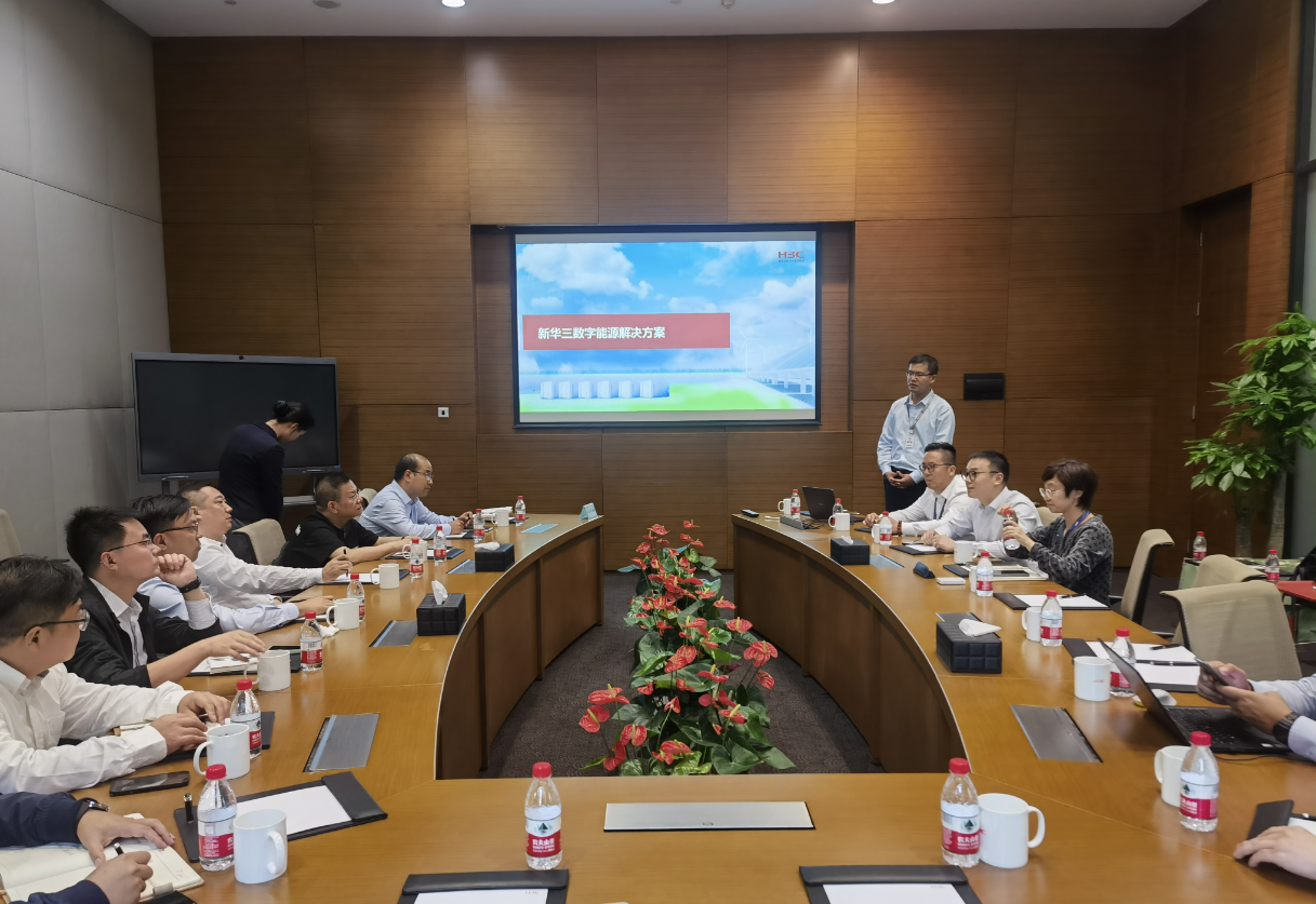 在杭州濱江新華三運營總部,交流團全面了解新華三集團在計算、存儲、網絡、5G、安全、終端等全方位的數字化基礎設施整體能力,深入探討雙方在光伏等新能源海外市場開展業務合作的可能性。